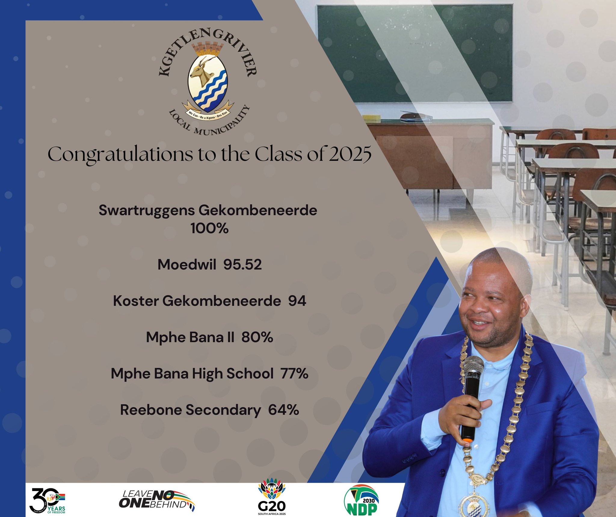 Kgetlengrivier Local Municipality proudly congratulates the Class of 2025 on their outstanding academic achievements. Your hard work, perseverance, and dedication have yielded excellent results that make your families, schools, and the entire community proud.